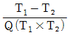 25. 온도가 T1 인 고열원으로부터 온도가 T2인 저열원으로 열전도, 대류, 복사 등에 의해 Q만큼 열전달이 이루어졌을 때 전체 엔트로피 변화량을 나타내는 식은?