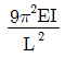 14. 다음과 같은 장주(long column)에 하중 Pcr을 가 했더니 오른쪽 그림과 같이 좌굴이 일어났다. 이 때 오일러 좌굴하중 Pcr은?(단, 탄성계수는 E, 관성모멘트는 I, 길이는 L이다.)
