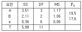- ③ 요인 A,B 모두 유의수준 1%에서 유의하다.