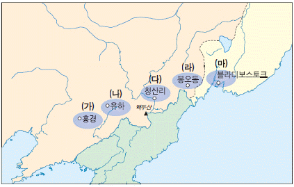 40. (가)~(마) 지역에서 활동한 독립군으로 옳지 않은 것은? [2점]