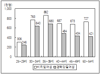 - ② 연령대별 기혼여성 중 비취업여성과 경력단절여성