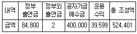 - ② 2012년 1~9월 국제협력기금 조성액 현황(단위:백만원)