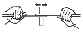 54. 그림과 같이 가운데 있는 봉을 양쪽으로 당겼다. 이 중앙의 봉에 발생하는 하중의 형태가 가장 올바른 것은?