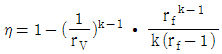19. 오토(Otto) 사이클의 효율(η)을 표시하는 식으로 옳은 것은? (단, k = 비열비, rV = 압축비, rf = 팽창비 이다.)