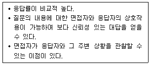- ④ 면접설문조사에서는 면접원이 질문에 대한 대답 외에도 중요한 관찰을 할 수 있다.