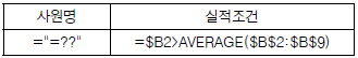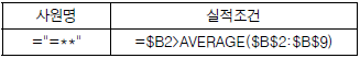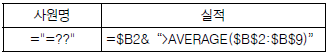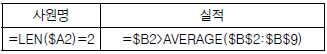함수나 수식 사용 시 문자는 큰따옴표(""),