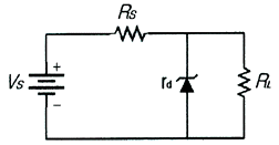 1. 다음 그림의 정전압 다이오드 회로에서 입력이 ±2[V]변화할 때, 출력전압의 변화는? (단, 제너 다이오드의 내부저항은 rd = 4[Ω], 저항은 Rs = 200[Ω]이다.)