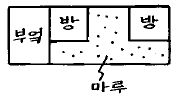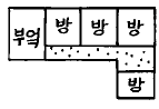 6. 한국 전통 서민주택중 개성지방의 서민주택 평면은 다음 그림중 어느 것인가?
