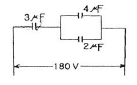 74. 그림과 같은 직병렬회로에 180V를 가하면 3μF의 콘덴서에 축적된 에너지는 약 몇 [J] 인가?