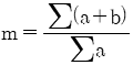 45. 정량조직검사에서 평균입도번호(m)를 구하는 식으로 옳은 것은? (단, a:각 시야에서의 입도 번호, d:동일 입도번호를 표시하는 시야수이다.)