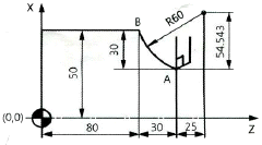 - ③ G02 X100.0 Z80.0 I54.543 K25.0 F0.3 ;