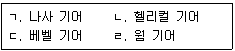 2. 두 축이 평행하지도 만나지도 않을 때 사용하는 기어를 모두 고른 것은?
