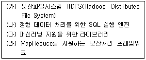 38. 빅데이터를 다루기 위한 오픈소스 소프트웨어인 '하둡(Hadoop)의 구성요소'를 옳게 고른 것은?