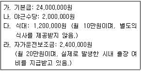 13. 다음 자료를 이용하여 (주)한공의 영업팀에서 근무하는 김한공 씨의 2020년도 과세대상 근로소득을 계산하면 얼마인가?