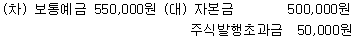 - ④ (차) 보통예금 550,000원 (대) 자본금 550,000원