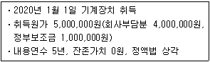 6. 다음은 (주)한공이 정부보조금을 수령하여 취득한 기계장치 관련 자료이다. 2020년 기말 재무상태표에 계상될 기계장치의 장부금액은 얼마인가?