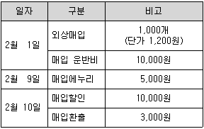 6. 다음은 (주)한공의 2020년 2월 중 상품 취득 관련 자료이다. 2월말 현재 상품의 취득원가는 얼마인가?