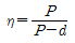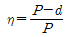 74. 길이 방향으로 배치된 관 구멍부의 효율(η)은 피치가 같을 경우, 어떤 식으로 나타낼 수 있는가? (단, P는 관 구멍의 피치[mm], d는 관 구멍의 지름[mm]이다.)