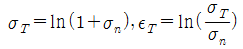 - ③ σT=σnln(1+εn), εT=εnln(1+σn)