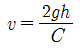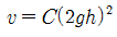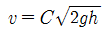 82. 주조시 탕구의 높이와 유속과의 관계가 옳은 식은? (단, v:유속(cm/s), h:탕구의 높이(쇳물이 채워진 높이, cm), g: 중력 가속도(cm/s2), C:유량계수이다.)