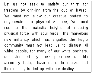 - ② 창조적 저항이 물리적 폭력으로 전학해서는 안 된다.