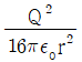 12. 공기 중에서 접지된 무한 넓이 평면 도체판으로부터 r[m] 떨어진 점에 Q[C]의 점전하를 놓을 때, 이 점전하에 작용하는 힘(引力)의 크기는 몇 N 인가?