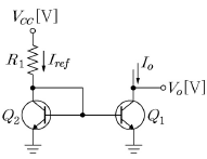 9. <보기>의 전류거울회로에서 TR Q1, Q2는 동일한 소자이다. 전류증폭율 β0=140이고, 출력저항 r=∞(무한대), VEE=0.7[V], V0>VEE, R1=50[kΩ]로 주어진 경우, I0=0.4[mA]가 되기 위한 VCC의 값[V]은?