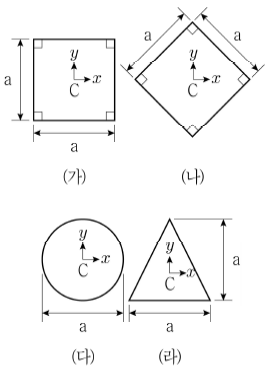 4. 그림과 같이 도형의 도심 C의 축에 대한 탄성단면계수의 크기가 큰 것부터 바르게 나열한 것은?