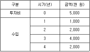 회수기간 = 투자금액 만큼의 수입이 발생하는 기간을 구하는것