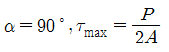 16. 다음 그림과 같이 단면적인 A인 강봉의 축선을 따라 하중P가 작용할 때, 임의의 경사 평면에서 전단응력이 최대가 될 때의 면의 각(α)과 이 경우에 해당하는 전단응력(τmax)은 얼마인가?