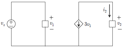 2. 다음 회로에서 v2=3i2 이고, i2=9A 일 때 vs [V]는?
