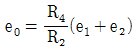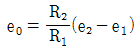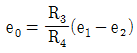 11. 다음 연산증폭회로에서 출력전압 e0 를 구하는 식은? (단, R1 = R3, R2 = R4 이다.)