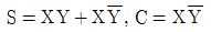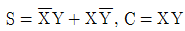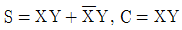 4. 다음은 반가산기(Half Adder)의 블록도이다. 출력단자 S(sum) 및 C(carry)에 나타나는 논리식은?