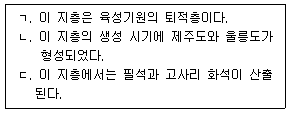 34. 그림은 우리나라 어느 지역의 동일 지층에서 발견된 화석이다. 이에 관한 설명으로 옳은 것만을 <보기>에서 있는 대로 고른 것은?