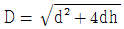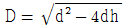 1. 원통 드로잉 제품의 직경을(d)라 하고, 높이를(h)라 하며, 각 반지름(r)을 고려햐지 않을 때 블랭크 직경(D)는 어떻게 계산되는가?
