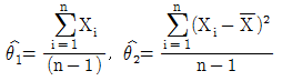 82. X1, X2, …, Xn이 정규분포 N(θ1, θ2), -∞<θ1<∞, 0<θ2<∞의 랜덤표본일 때, θ1과 θ2의 적률추정량(method of moment estimator)으로 옳은 것은?