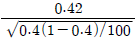 88. 모집단으로부터 추출된 크기 100의 랜덤표본에서 구한 표본 비율이 =0.42이다. 귀무가설 H0: P=0.4와 대립가설 H1 : P>0.3을 검정하기 위한 검정통계량은?