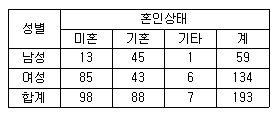 94. 다음의 표에 제시된 조사결과는 연령과 정치적 성향과의 관계를 분할표로 나타낸 것이다. 이 표로부터 카이자승의 값은?