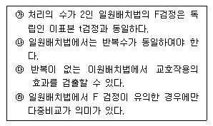 98. 분산분석에 관한 설명이다. 옳은 것으로 짝지은 것은?