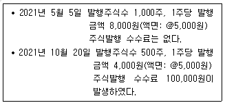 2. (주)한공은 당기 중 유상증자를 2차례 실시하였다. 다음 자료를 토대로 2021년 말 재무상태표에 표시되는 주식발행초과금을 계산하면 얼마인가? (단, 전기 말 주식 발행초과금과 주식할인발행차금 잔액은 없는 것으로 한다.)