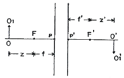 16. 얇은 렌즈에의해 그림과 같이 결상될 때 물체로부터 제1초점까지의 거리가 z, 제1초점거리가 f, 제2초점거리가 f′ 그리고 제2초점으로부터 상까지의 거리가 z′ 일 때 Newton의 방정식은?