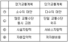 13. 장기교통계획과 단기교통계획의 특성을 비교한 내용으로 옳지 않은 것은?