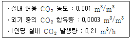 105. 다음과 같은 조건에서 재실인원 40명인 강의실에 요구되는 필요환기량은?