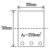 5. 그림과 같은 직사각형보에서 fck=30MPa, fy=300MPa, a=150mm일 때, 콘크리트가 부담하는 압축력[kN]은?