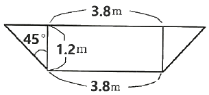 90. 계류의 바닥 폭이 3.8m, 양안의 경사각이 모두 45°이고, 높이가 1.2m일 때의 계류 횡단면적(m2)은?