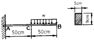 11. 그림과 같은 외팔보가 있다. 보의 굽힘에 대한 허용응력을 80MPa로 하고, 자유단 B로부터 보의 중앙점 C사이에 등분포하중 w를 작용시킬 때, w의 최대 허용값은 몇 kN/m인가? (단, 외팔보의 폭×높이는 5cm×9cm 이다.)