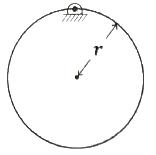 87. 그림과 같이 피벗으로 고정된 질량이 m이고, 반경이 r인 원형판의 진동주기는? (단, g는 중력가속도이고, 진동 각도는 상당히 작다고 가정한다.)