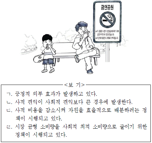 5. 그림은 외부 효과와 관련된 상황을 나타낸다. 이에 대한 옳은 설명을 <보기>에서 고른 것은?