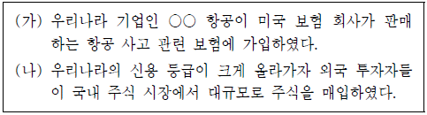 - ⑤ (가), (나)는 모두 우리나라의 외환 보유고를 증가시킨다.