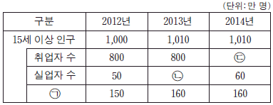 - ③ 2012년에 비해 2013년의 실업률은 증가했다.